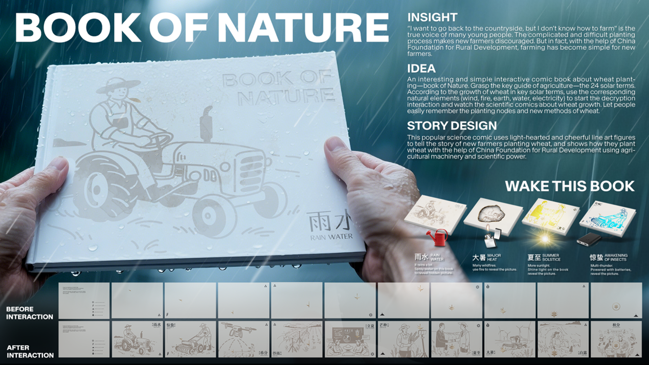My favorite work is the one that won the 2025 Young Lion China Gold Award. It’s under the design category. The brief challenges us to create a comic story that supports the China Rural Development Foundation and calls on the public to pay more attention to the rural communities, agriculture, and farmers.