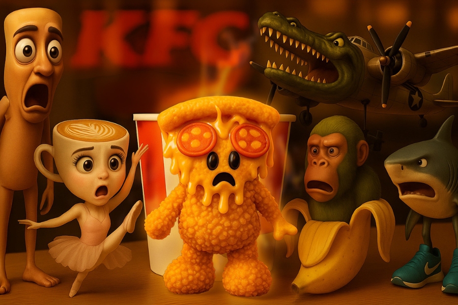 Serves it piping hot with AI gibberish and a side of meme overload—a gloriously absurd bid for Gen Z and Alpha attention.