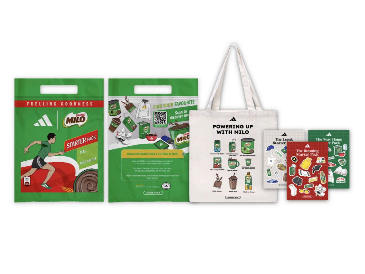 Adidas teamed up with Milo for a special SG60 collection featuring tees, pins, charms, and even a sachet kit. The campaign taps into nostalgic Singaporean moments and Singlish quirks, celebrating the unique local culture and the connections that span generations.